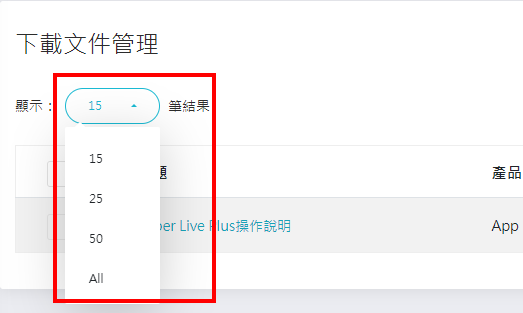 - 顯示結果: 可依據需要點選列表一次性要出現幾筆結果。(如下圖圈起處)